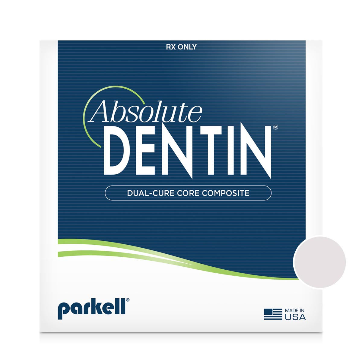 Absolute Dentin - White Kit - Dual Cure, Radiopaque, Core Resin. Kit Cotains: 1 - 50 mL Automix Cartridge (Split Design Only), 40 Mixing Tips, and 40 Intra-oral Tips.