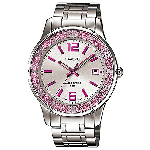 Casio #LTP1359D-4AV Women's Pink Sprinkled Bezel Metal Fashion Silver Dial Watch