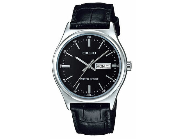 Casio #MTP-V003L-1A Men's Standard Analog Leather Band Black Dial Day Date Watch