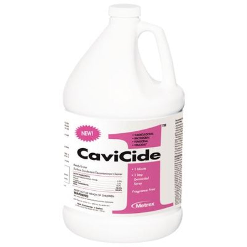 Description: CaviCide1 - 4 x 1 Gallon Case. Multi-Purpose Disinfectant / Decontaminant Cleaner. Non-bleach, low alcohol solution that kills TB and 25 other microorganisms in just one minute. Increase compliance, decrease risk of cross-contamination and quickly prepare for the next patient. Tuberculocidal, bactericidal, fungicidal and virucidal. Ammonium chlorides in 15% isoproponol and 7.5% ethanol quickly kill TB, MRSA, HIV-1, HBV, HCV, Staph and more. Safe for use on non-porous surfaces. Fragrance free.
