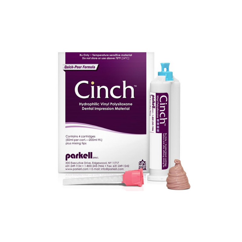 Cinch Medium Body, Fast Set 90 sec., Automix. Package of 4 - 50 ml Split Cartridges and 10 Mixing Tips. Hydrophilic Vinyl Polysiloxane Impression Material.