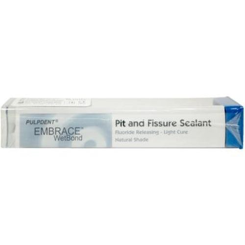 Description: Embrace WetBond Pit & Fissure Sealant - Natural shade, 1 - 3 ml Syringe. Hydrophilic, moisture tolerant resin restorative that bonds chemically and micromechanically to slightly moist teeth. Fluoride releasing. Light cure. Radiopaque. Tooth integrating. Margin free. Seals against microleakage. No bonding agents required.