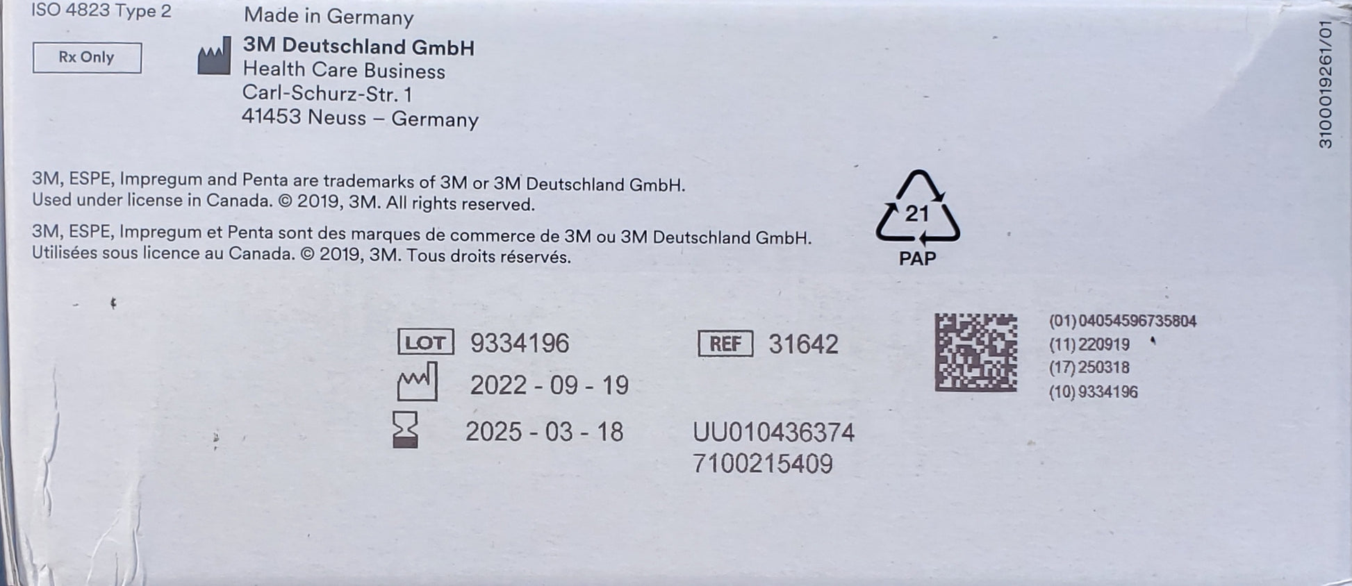 Impregum Penta - Refill Pack - Medium Body Polyether Impression Material, 2 - 300 mL foil bags Base and 2 - 60 mL foil bags Catalyst.