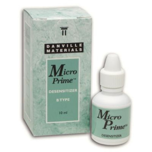 Description: MicroPrime G - Desensitizing Agent. Gluma Equivalent Formula, 35% HEMA and 5% Glutaraldehyde. Compatible with Total-Etch Bonding Systems, Cements and Amalgam. 10 mL Bottle.