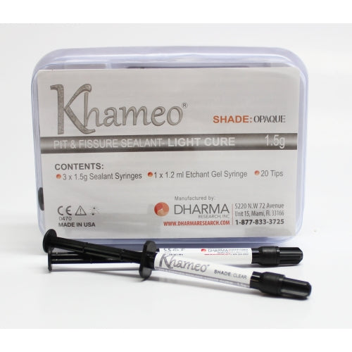 Light Cure Pit & Fissure Sealant, OPAQUE shade sealant kit with etch, Contains: 3 - 1.5gr syringes sealant, 1.5g syringe etchant, 20 disposable pre-bent 22ga black applicator tips.